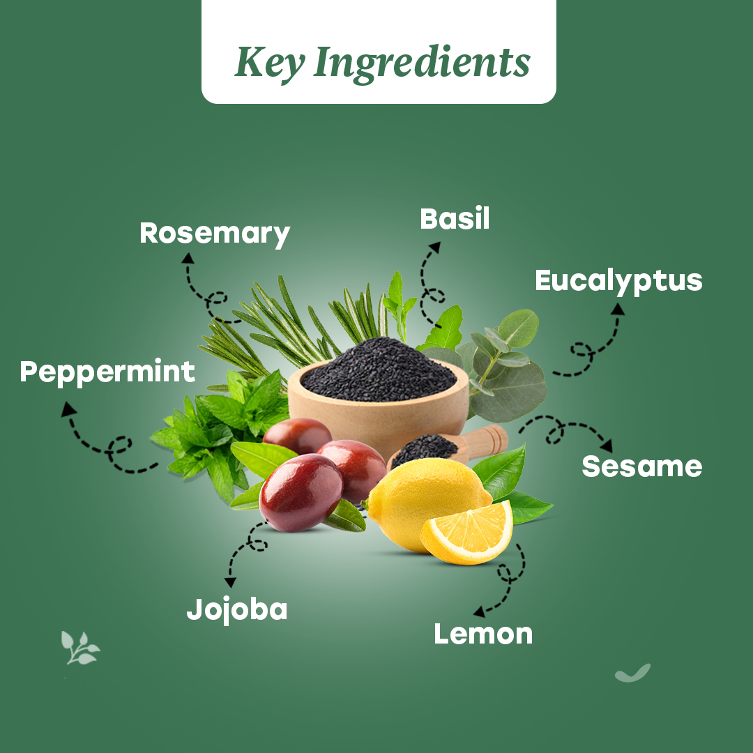 - Peppermint, Rosemary & Basil Oils – relieve tension, refresh the senses, and sharpen concentration