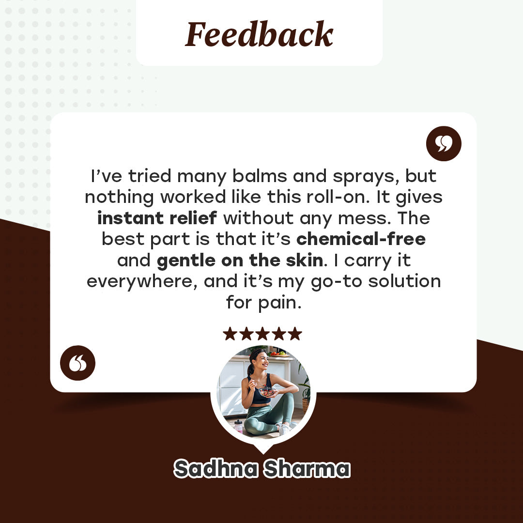 “After long hours at my desk, my shoulders ache. This roll-on brings quick relief and a soothing cooling sensation that lasts.”